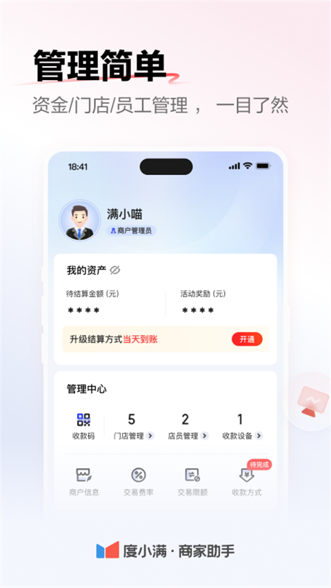 度小满商家助手软件最新版本下载安装是一款商务办公软件,软件内为用户提供实时播报收款功能,用户可以通过软件及时查询账单,避免出现逃单等情况发生,更多惊喜等你来发现,如此好用的软件,你还等什么?感兴趣的小伙伴快快下载前来体验吧!