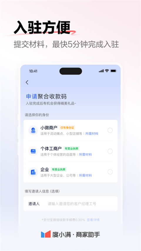 1、零成本使用:免费注册,无年费,降低小微商户经营成本。