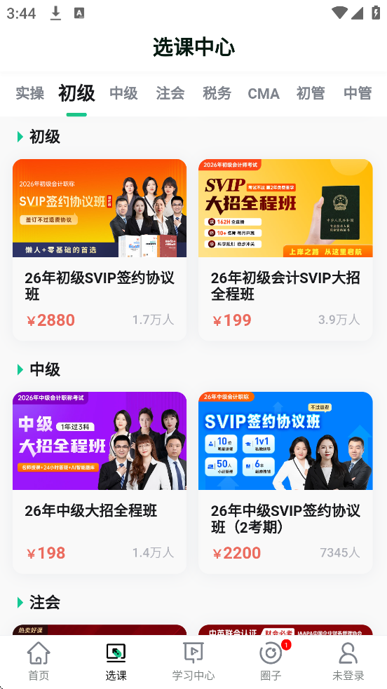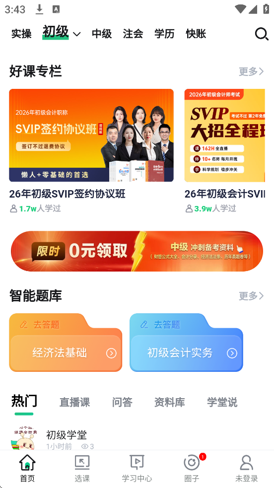 3、免费资源:初级/中级会计等考证课程及实操直播课均免费开放。