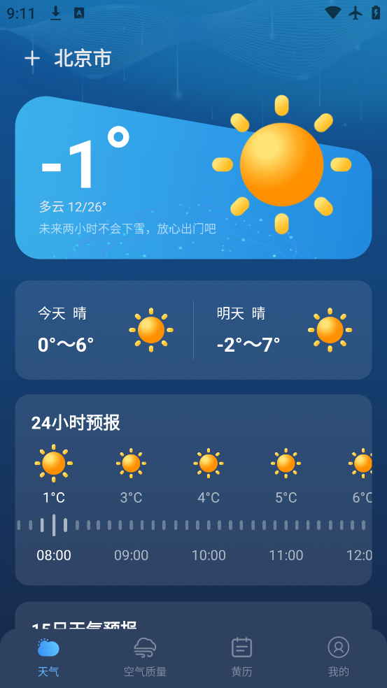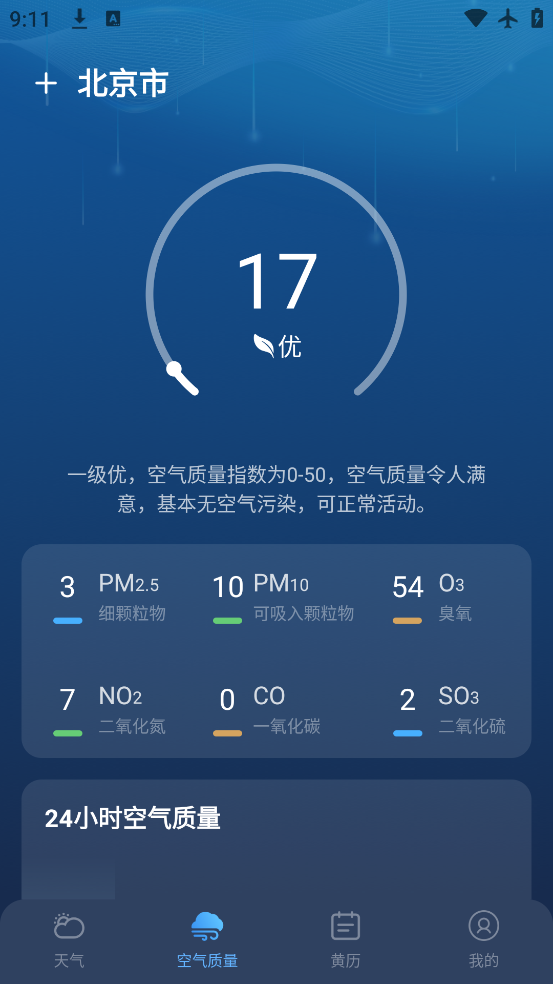 2、使用简单,有24小时实时天气变化了解,包括空气和天气。