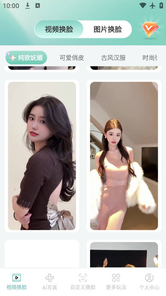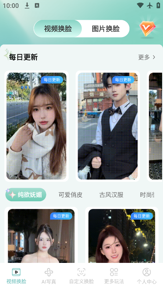 一键换脸app免费下载是一款全新的AI智能换脸软件,通过先进的人工智能技术为用户提供便捷的换脸体验。用户只需上传一张照片,就可以轻松合成多种风格的动态效果,如古风汉服、青春风华、高冷女神、肌肉型男等,带来独特的娱乐体验。