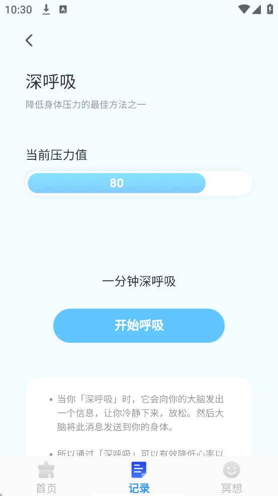 4、使用冥想功能时,跟随引导进行呼吸训练。