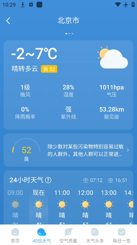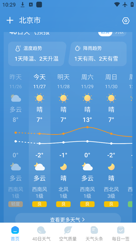 2、详细预报天气状态,温度、风向、空气质量等,短期温度变化,长期四季更替;空气质量指数:不仅提供天气情况,还能为您呈现空气质量指数,帮助您更好地了解空气状况。