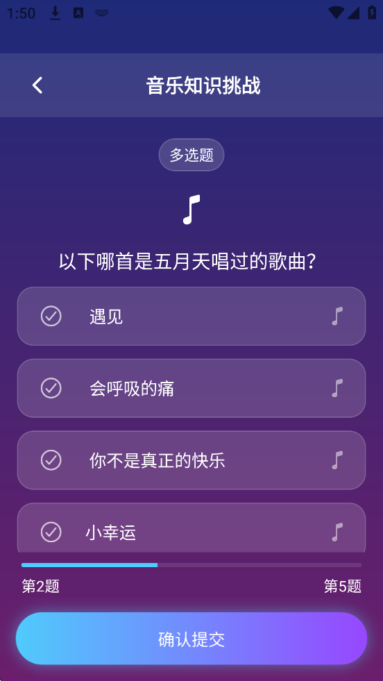 1、创新音乐竞猜玩法:结合听歌与猜谜,通过旋律识别和歌词填空等形式带来全新互动体验。