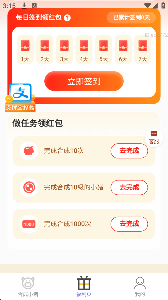 每日签到领取红包,完成指定任务(如观看广告)获取额外奖励。