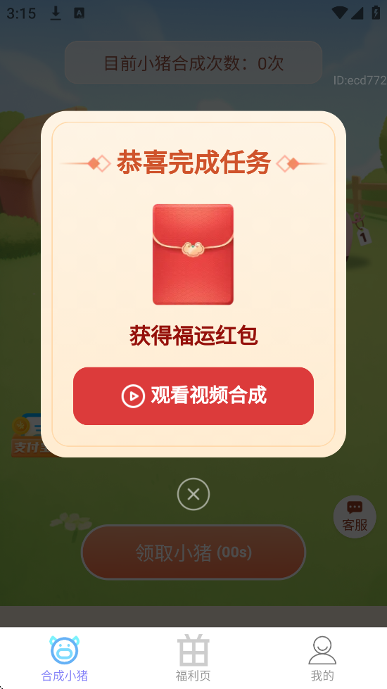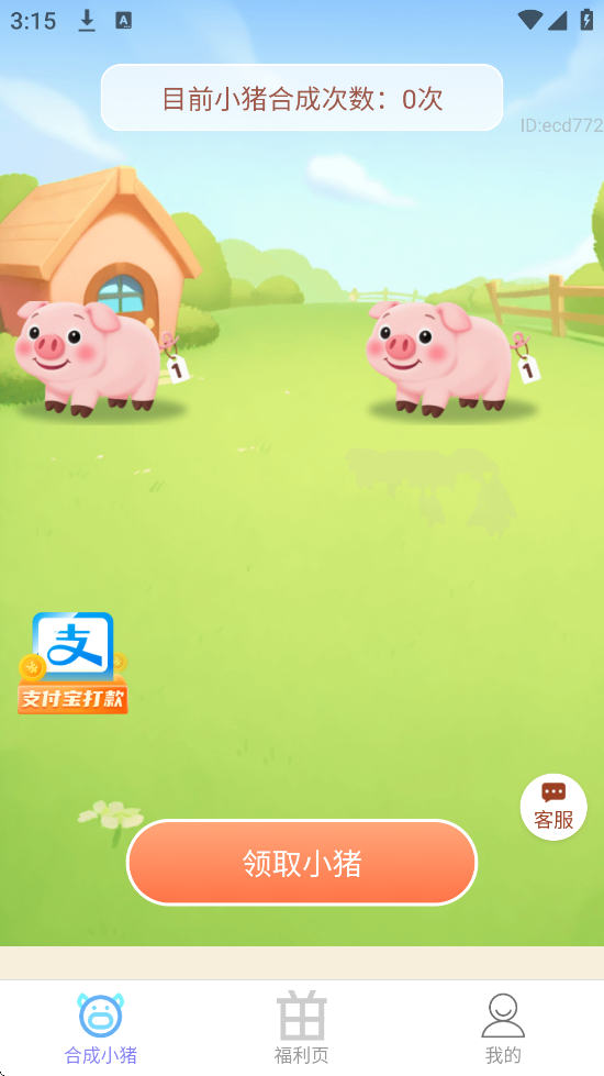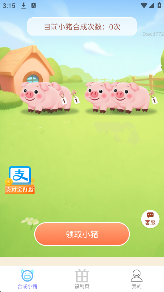 领取1级小猪,两只合成升级,高级小猪产生更多福气值(类似阳光养猪场规则)。