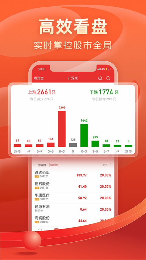 2、行情分析:提供实时行情、主力资金流向、K线图及财务指标,支持港股、期货等市场数据。