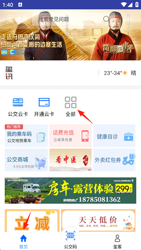 2、在全部应用页面囊括了公交云卡、地铁出行、家政维修、实时天气、公积金等众多服务功能,以公交云卡为例,点击进入;