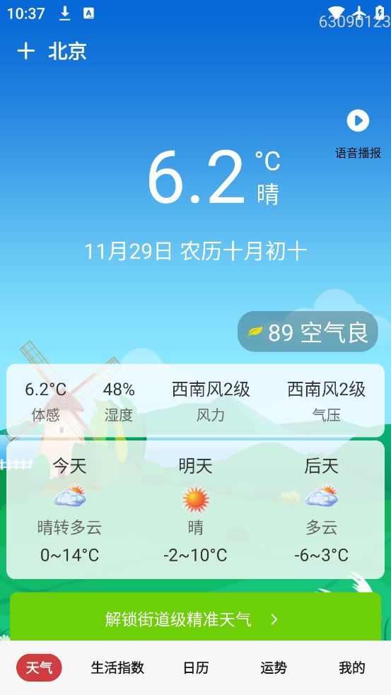 2、天气预报:45天超长预报、48小时逐小时预报,陪你预见未来。