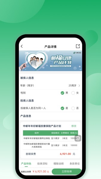 1、官方保障:由中国邮政推出,提供专业、稳定的保险服务。
