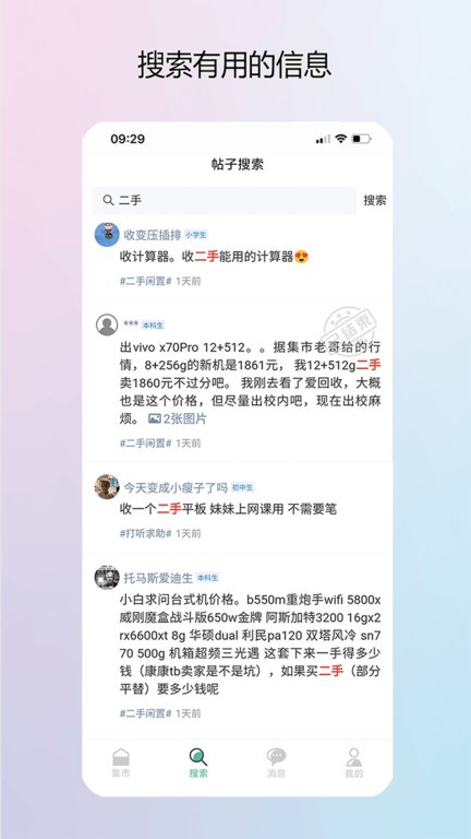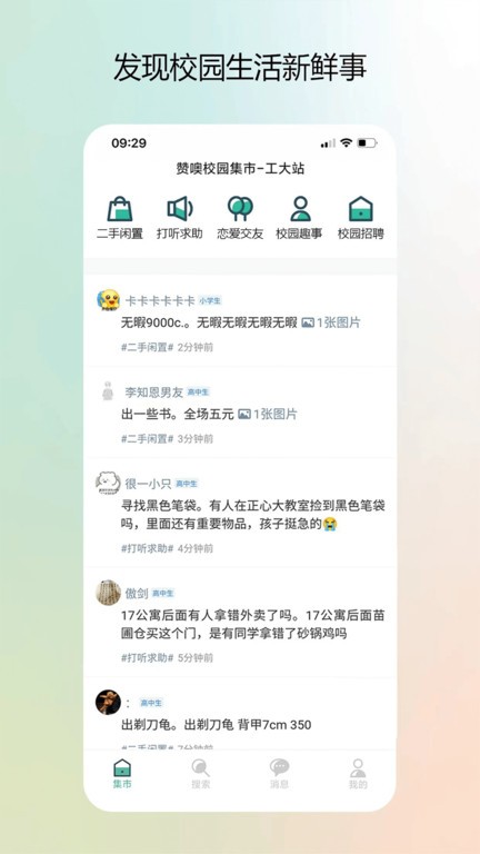 3、智能定位:根据所选学校推送个性化资讯,优化本地交易体验。