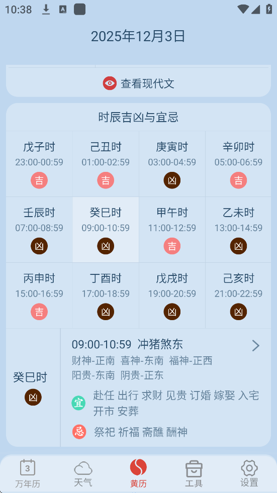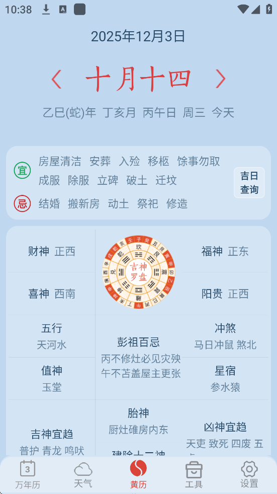 黄历宜忌:进入“黄历”界面,查看当日宜忌事项(如婚嫁、出行)。