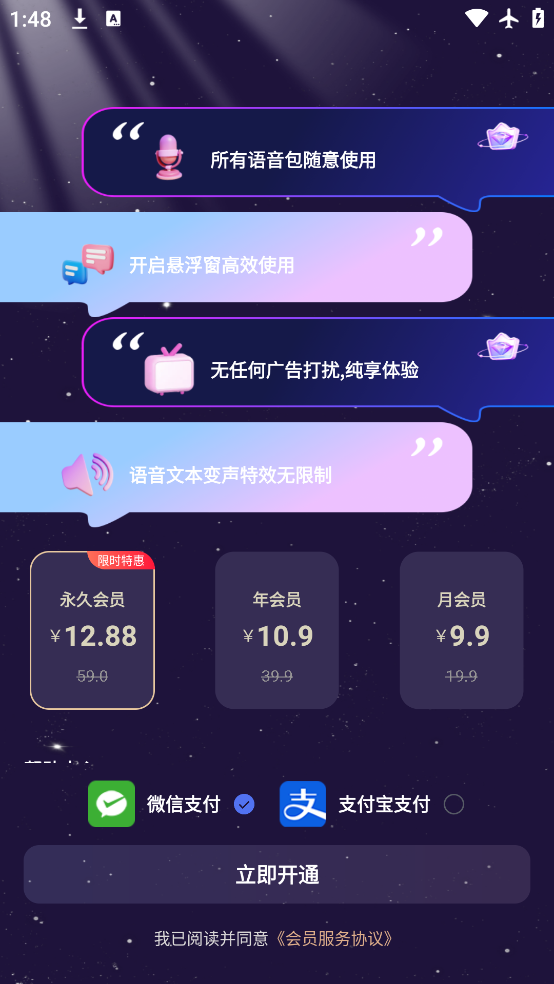 2、创新悬浮窗设计,支持边聊边变声!开启后可在微信、QQ、游戏等任意APP中实时使用,说话即变声,无需提前录制,互动更自然,搞笑不间断~