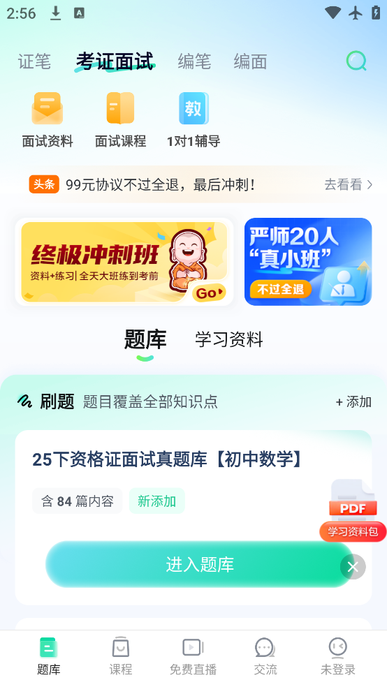 3、新增资料库:包含上岸经验分享帖、碎片化知识短视频以及用于快速查漏补缺的学习卡片。