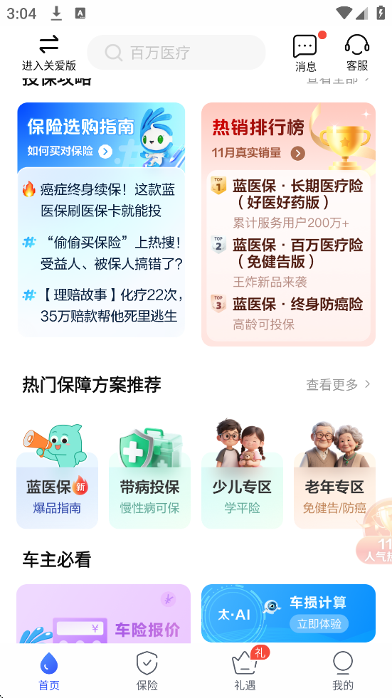 2、保险购买:涵盖意外险、车险、财产险等,支持在线投保及个性化方案推荐。