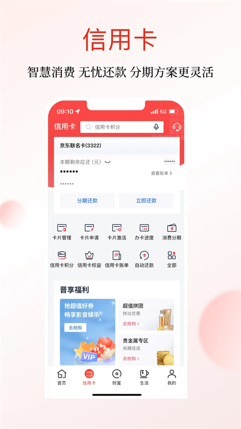 5、信用卡服务:涵盖账单查询、还款、分期等业务。