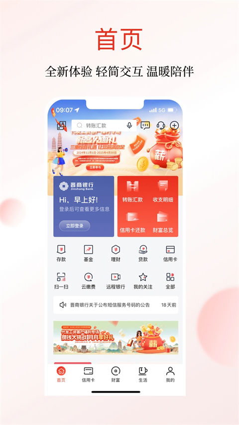 1、金融生活一体化:整合理财、缴费、网点查询等场景化服务。