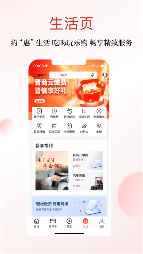 缴费:进入“生活”服务区,选择项目并支付。