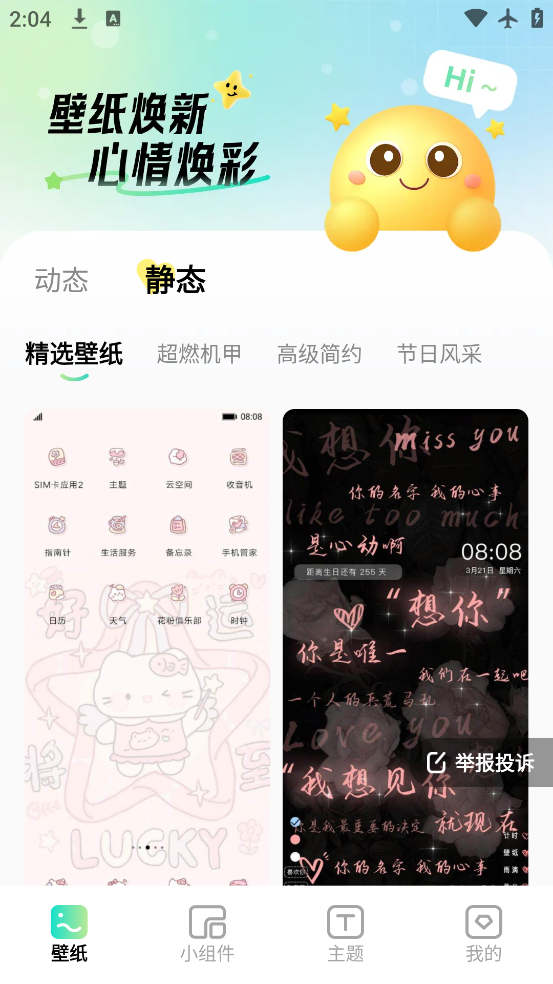 3、除了壁纸,平台还提供各种小组件和主题,让手机桌面更加个性化。