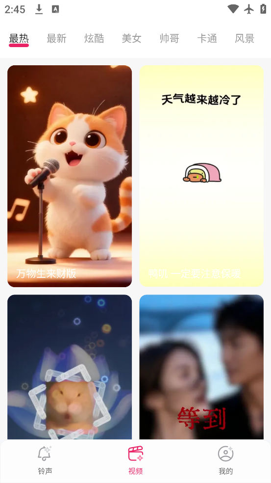 免费铃声多app官方版下载这款APP真是太棒了!里面有各种热门充电提示音和有趣炫酷的充电视频,让每次充电都变得更有仪式感。还可以下载并设置自己喜欢的铃声,还可以分享给朋友们一起听,真是乐在其中啊!