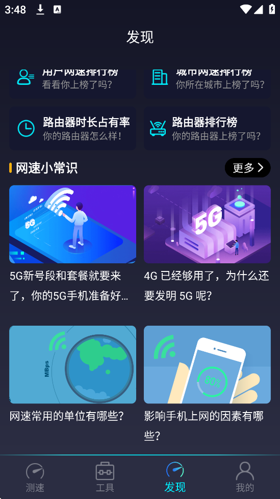 4、网速排名:显示用户网速排名,查看自己的网速名次。