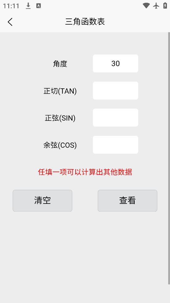 1、角度计算包括:三角函数计算、比例计算,输入三项数据即可求得另一项结果。