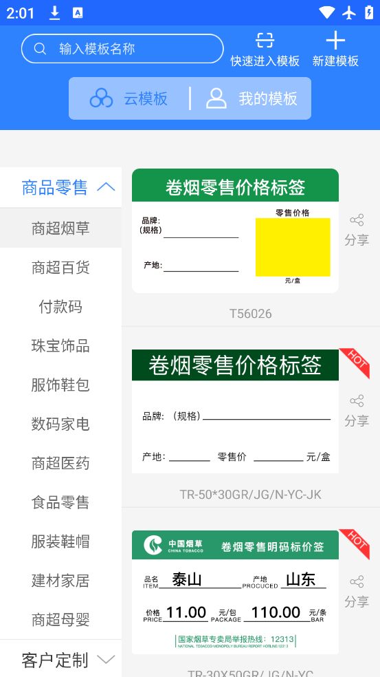 硕方智能打印app官方下载让你的手机能够轻易连接设备,并且在手机上面选择你所需要打印的格式或者是模板,适用于各种场景的模板你都能选择,并且字体也能够进行选择,打印速度也非常快!