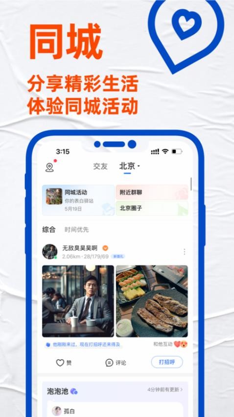 2、精准地理位置分享:精确的地理位置分享功能,帮助用户快速找到附近的朋友,增加线下见面机会。