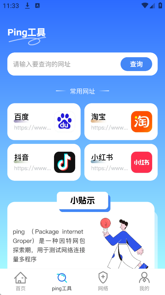 4、Ping工具:帮助用户快速检测网络连接状况。