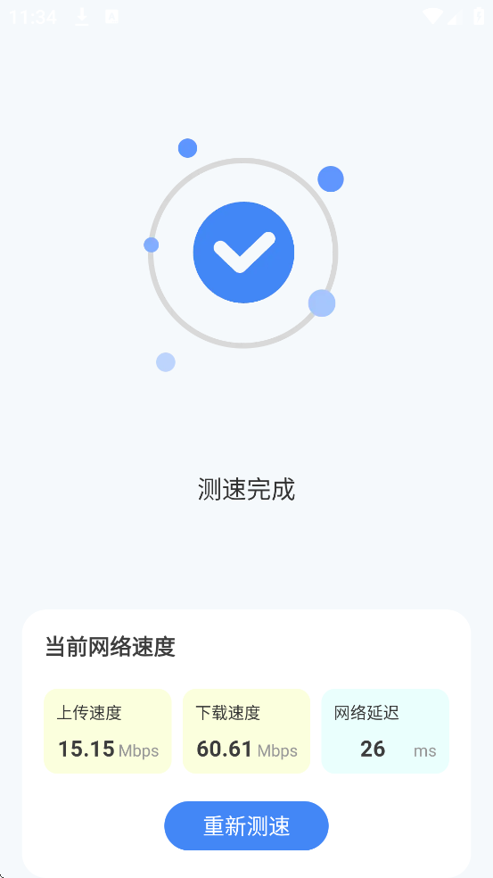 1、网络测速:一键精准测试当前网络的上传、下载速度。