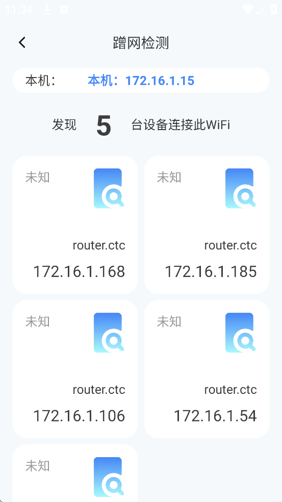 3、蹭网检测:快速检测是否存在蹭网设备,保护网络安全。