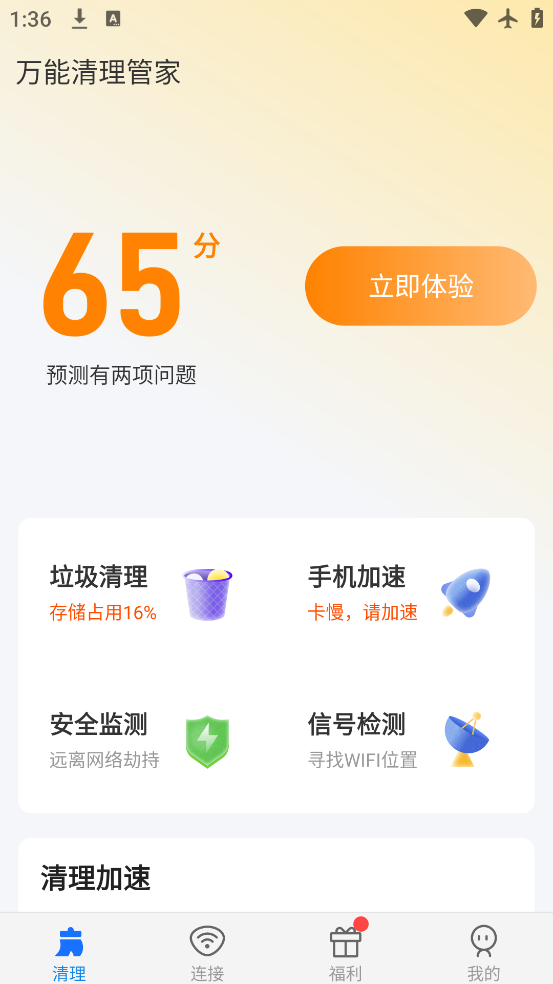 2、一键加速,手机运行如飞,刷视频玩游戏再也不卡顿。