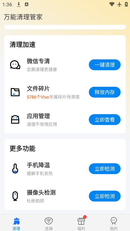5、深度清理,优化电池,一键降温,延长手机寿命。