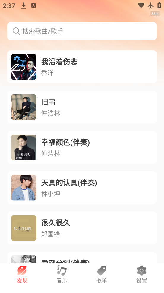 2、通过键入歌词搜索您最喜欢的歌曲或艺术家