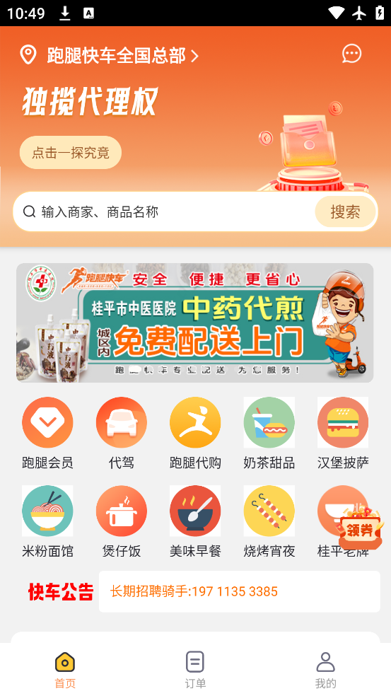 渴了饿了不必愁,上跑腿快车瞧一瞧,动手点一点,外卖即可送货到家,为您提供方便、快捷、省时又贴心的服务。早餐,生活用品,超市零食,宵夜,生鲜,粥粉面,茶饮,小吃等应有尽有。
