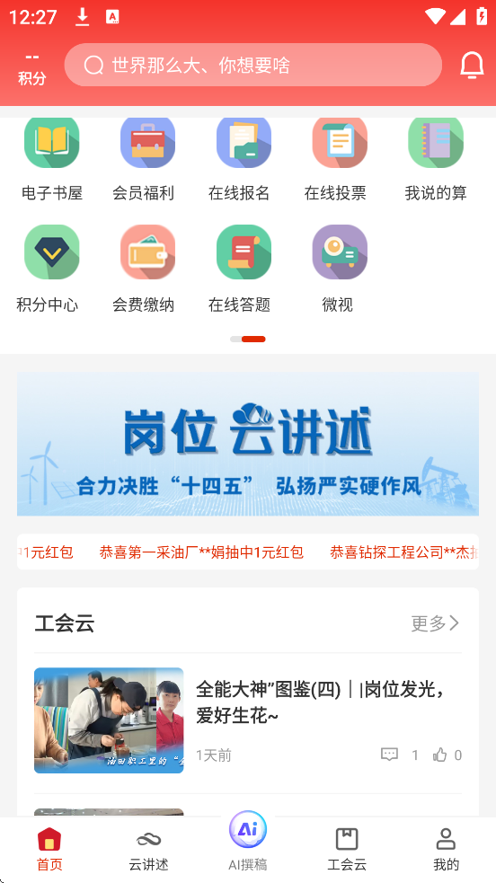 5、新闻阅读、在线投票、心理咨询、法律咨询、婚恋交友以及工会会员专属福利查询等功能。