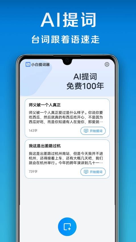 1、AI智能提词是它的核心功能,开启后,你只需开口说话,文字就会自动滚动,停顿即停,快慢由你掌控,彻底告别传统提词器的生硬感。