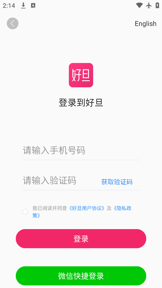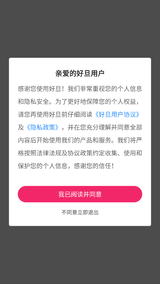 1、在好旦中点击"我已阅读并同意",进入登录界面。