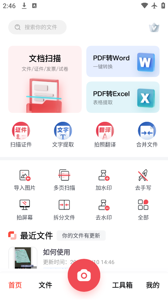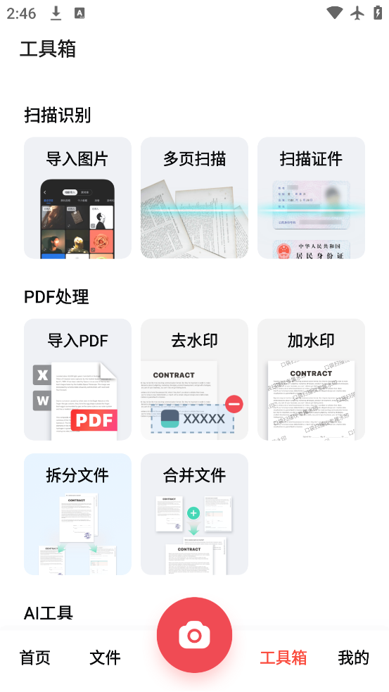 2、万物皆可扫,文件,身份证件、合同、发票、名片、电子屏幕一键批量扫描,智能生成高清PDF扫描件,免费分享无水印。