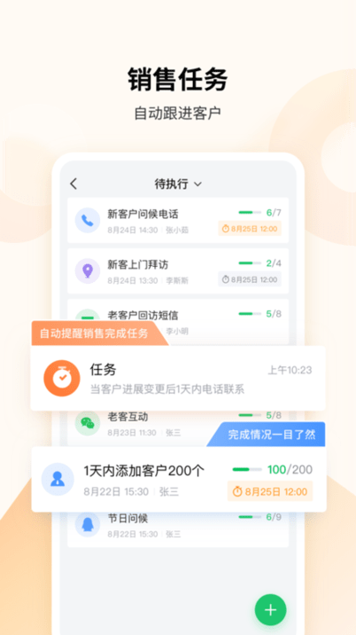 2、智能化销售管理,提供外呼、客户画像和跟进提醒。