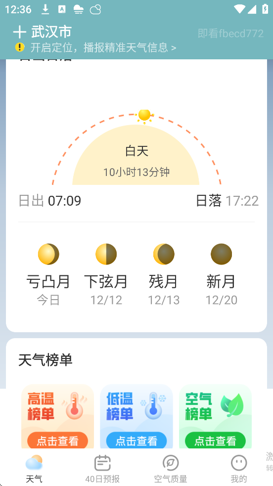 2、提供未来几天乃至40天的天气预报,以及分钟级的降水预测。