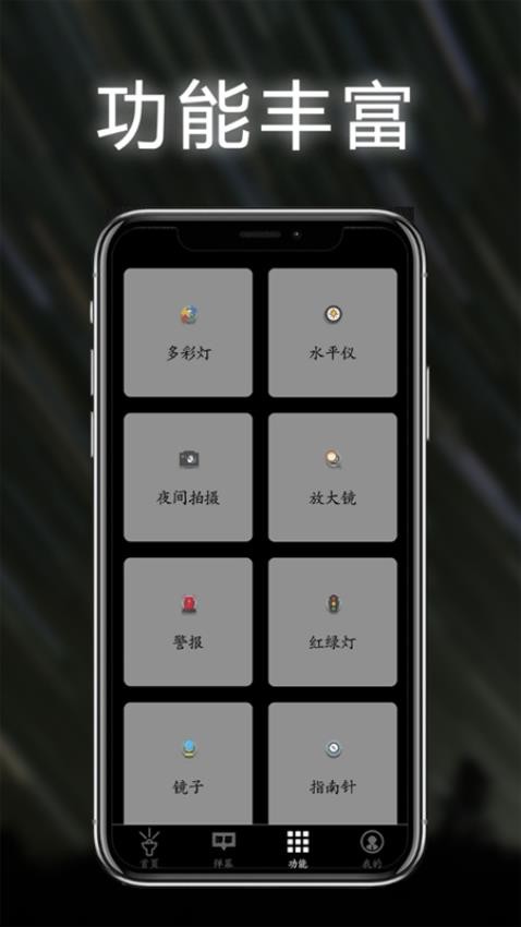 1、基础照明:支持手机闪光灯常亮、屏幕光及感光自动开关。