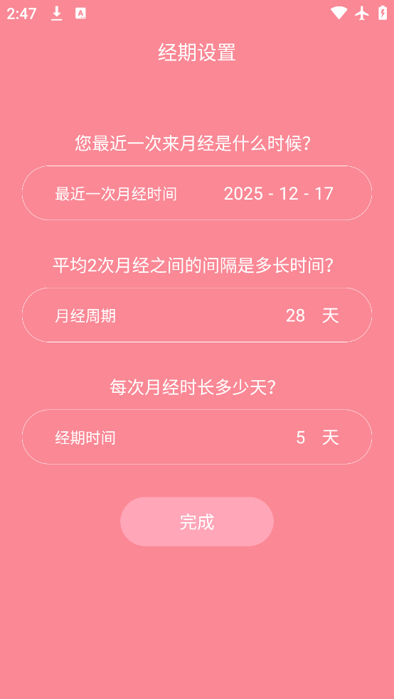 2、完成注册并登录,完善用户的个人信息即可开始在线管理经期。