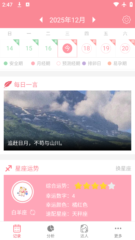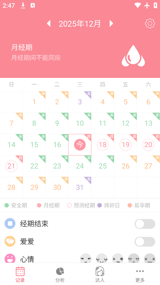3、贴心的管理经期状况,能及时发现各种异常问题,让经期生活变得更简单,提高生活的乐趣,更健康。