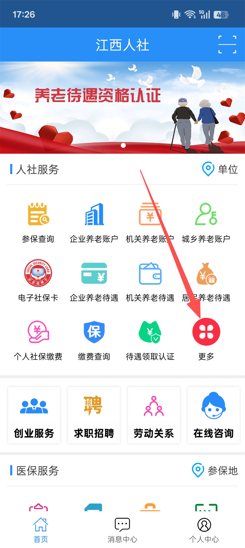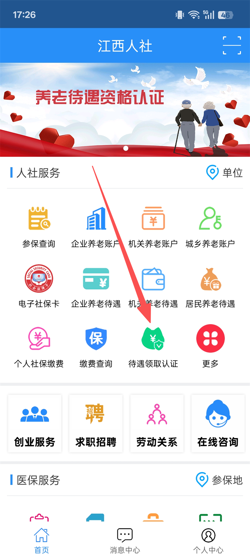 2、个性化服务:赣服通“人社专区”可查看个人社保数据、认证状态(绿/黄/红码提示)。