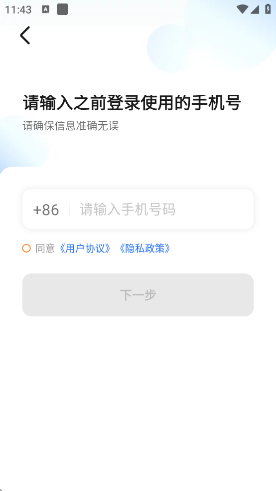 1、输入手机号码,勾选同意相关协议后点击下一步注册。
