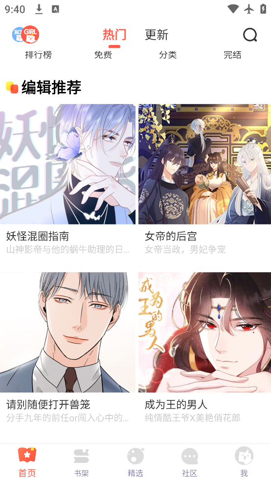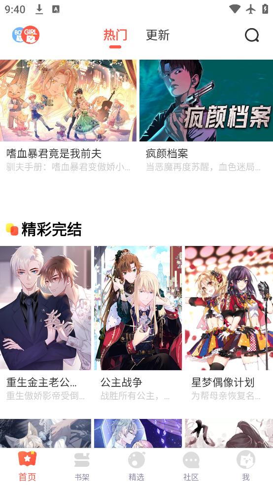2、精品内容矩阵包含特色故事与资讯漫画,满足不同性别读者的阅读需求。
