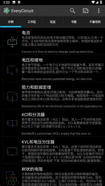 3、试验我们的应用程序提供的各种组件。您可以使用电阻器,二极管,晶体管和许多其他组件!它们可以精确地运行;因此,您所要放在一起并观察的就是它们是如何工作的。从阅读中获得的一些信息也可以在这里模拟,以用于观察目的。