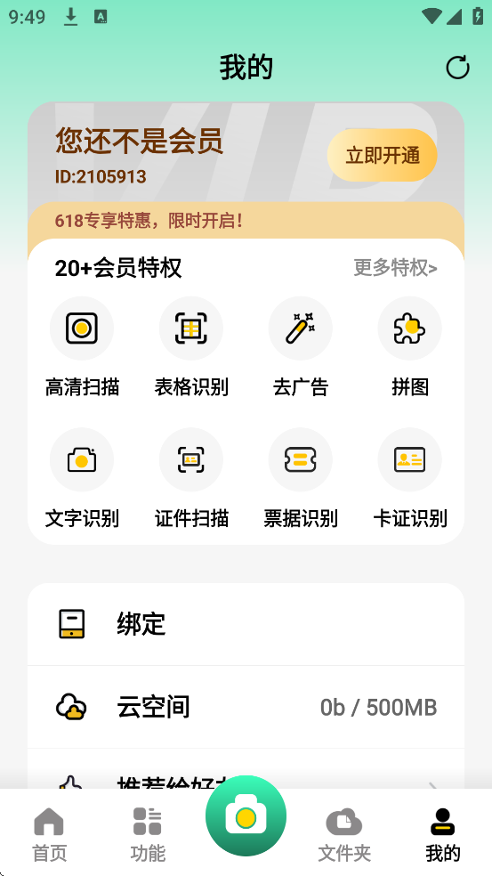 启动极速扫描仪,在首页或功能菜单中找到“PDF转Word”或“OCR识别”选项。