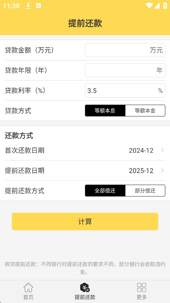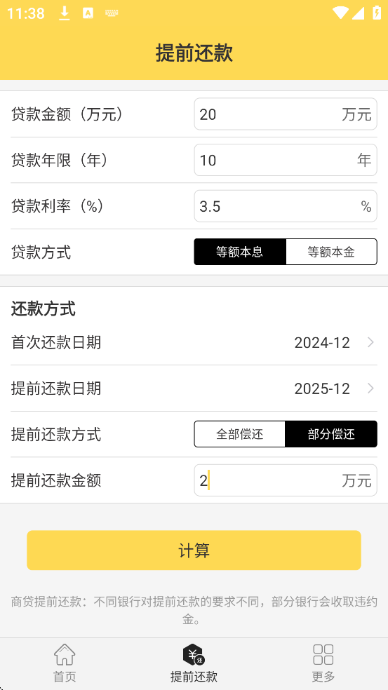 1、提前还贷计算:定制最佳还款方案,节省利息或缩短期限。